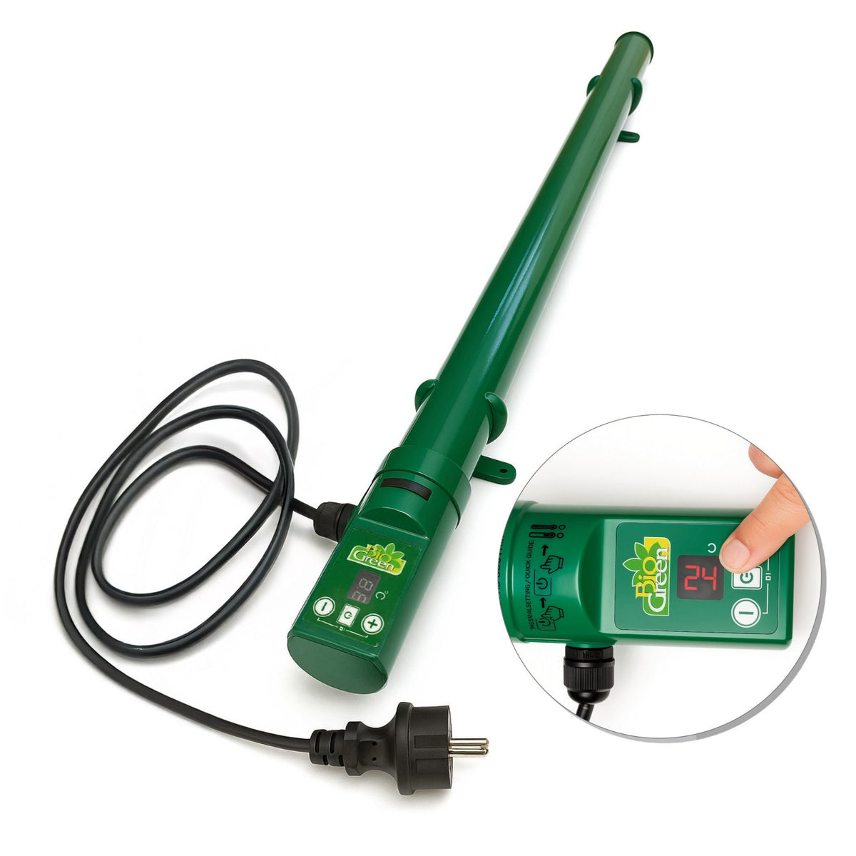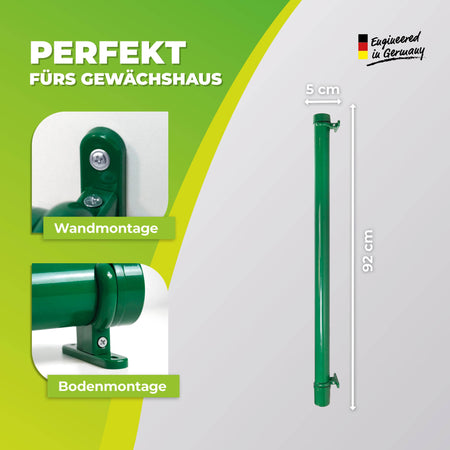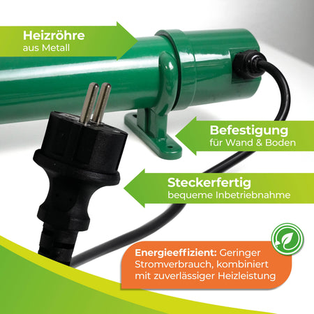 Die Bedienung ist kinderleicht: Temperatur einstellen, einstecken – und der Frostwächter übernimmt den Rest. Durch den Spritzwasserschutz nach IPX4 ist das Gerät zudem sicher in feuchten Umgebungen einsetzbar, beispielsweise in Gewächshäusern, Folientunneln, Frühbeeten oder Kellerräumen. Mit einer Länge von nur 92 cm und einem Durchmesser von 5 cm ist die Heizung äußerst platzsparend und kann wahlweise aufgestellt oder mithilfe der Halterungen an der Wand montiert werden. So erhalten Ihre Pflanzen eine zuverlässige, konstante Wärmequelle, die sie sicher durch die kalte Jahreszeit bringt.
