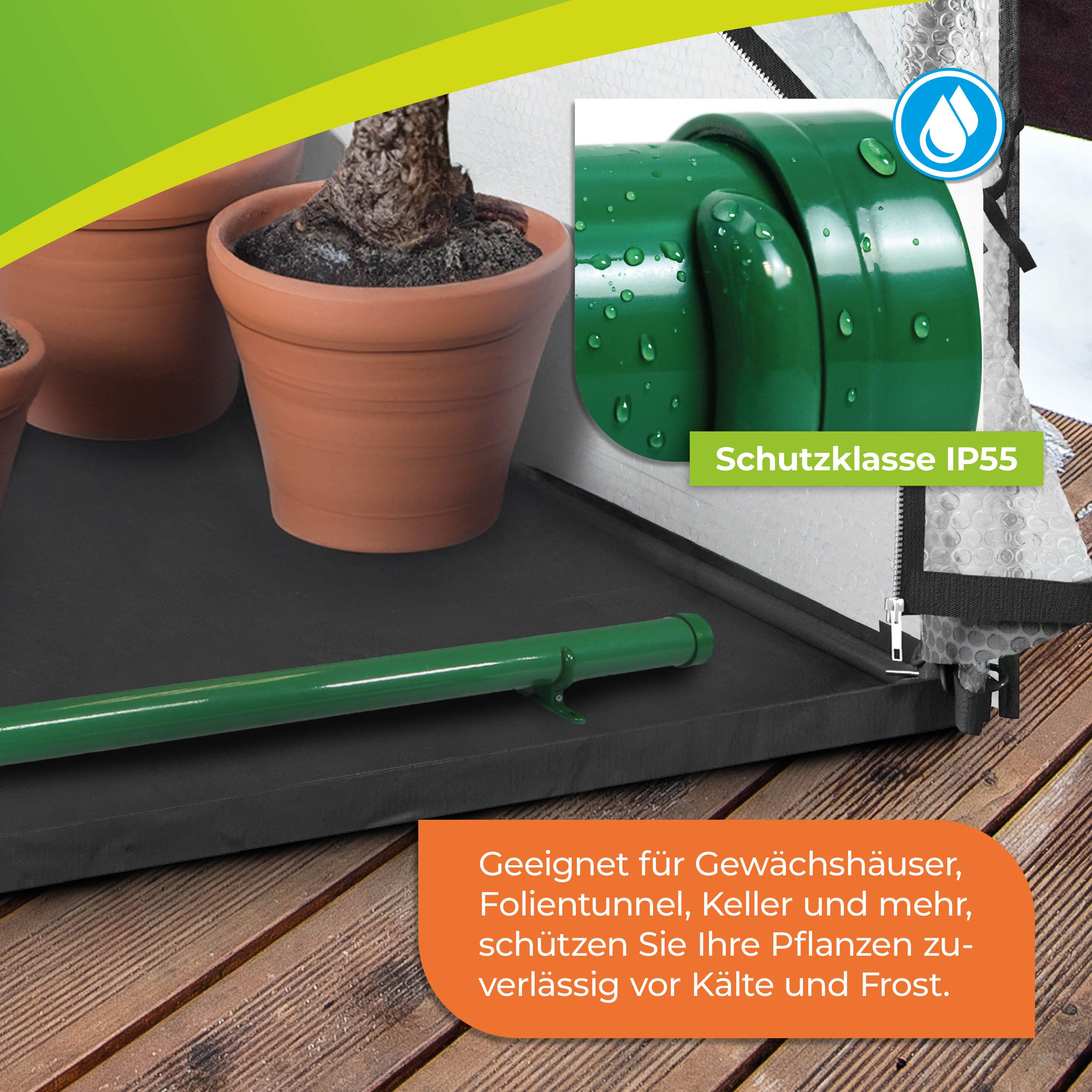 Vielseitig einsetzbar: Geeignet für Gewächshäuser, Folientunnel, Keller und mehr, schützt sie Ihre Pflanzen zuverlässig vor Frost.