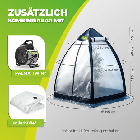 Hinweis: Für den optimalen Schutz vor Frost benötigen Sie eine Gewächshaus-Heizung im Zelt.
