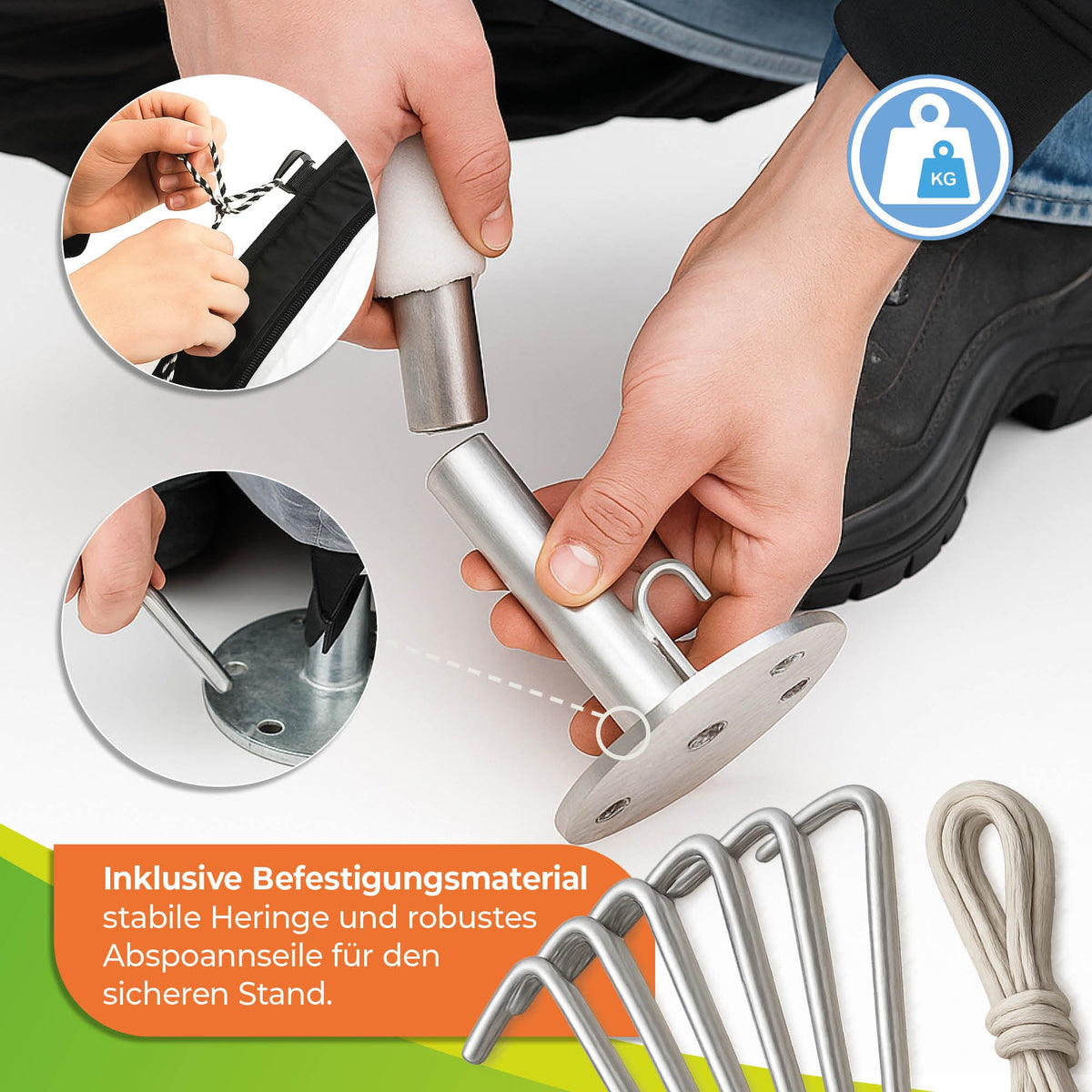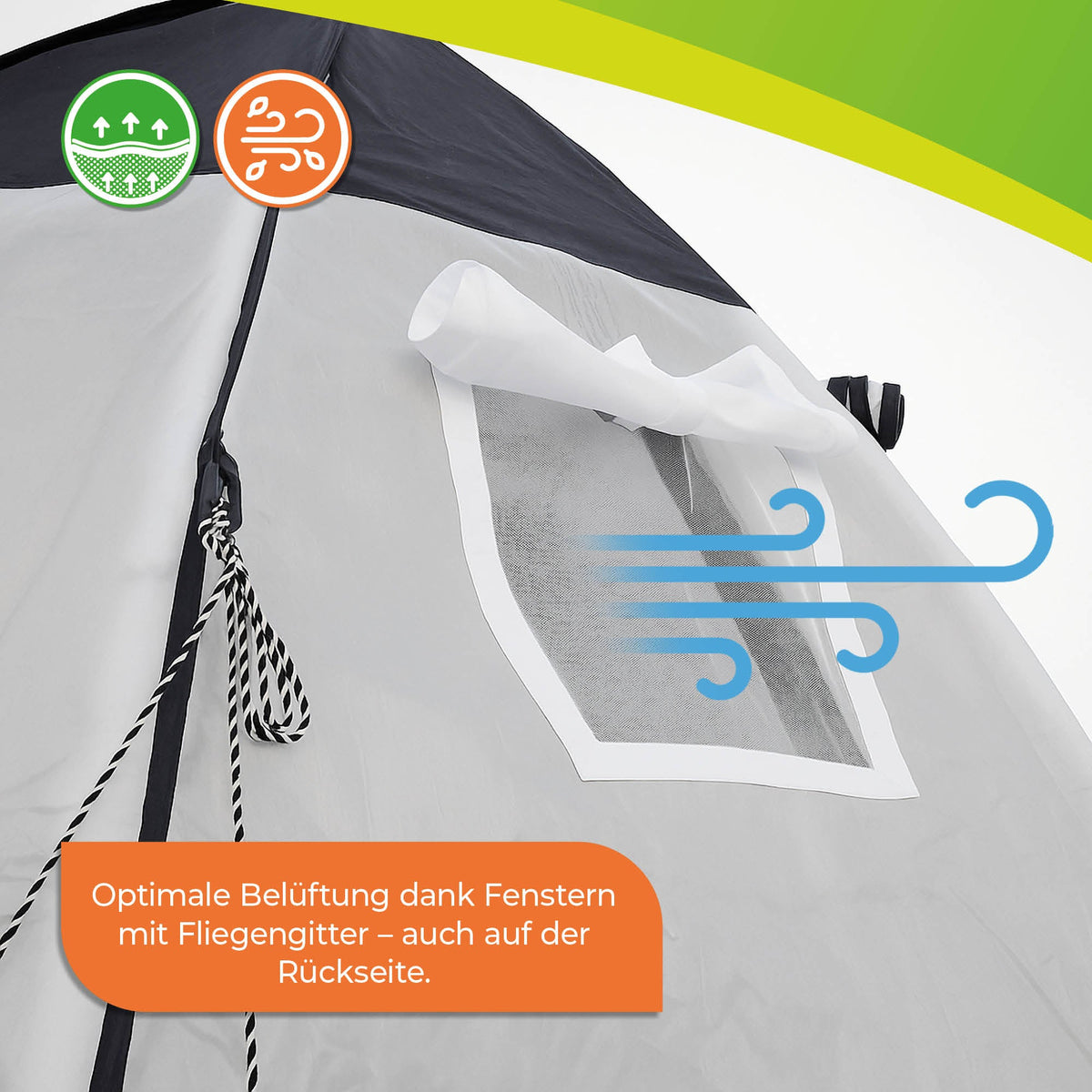 - Keine Chance für Kältebrücken! Der großzügige Bodenrand lässt keinen kalten Luftzug rein und hält die Wärme drin. Nutzen Sie den Bodenrand außerdem für mehr Halt zusätzlich zu den Halteseilen. Legen Sie einfach eine Beschwerung drauf.
