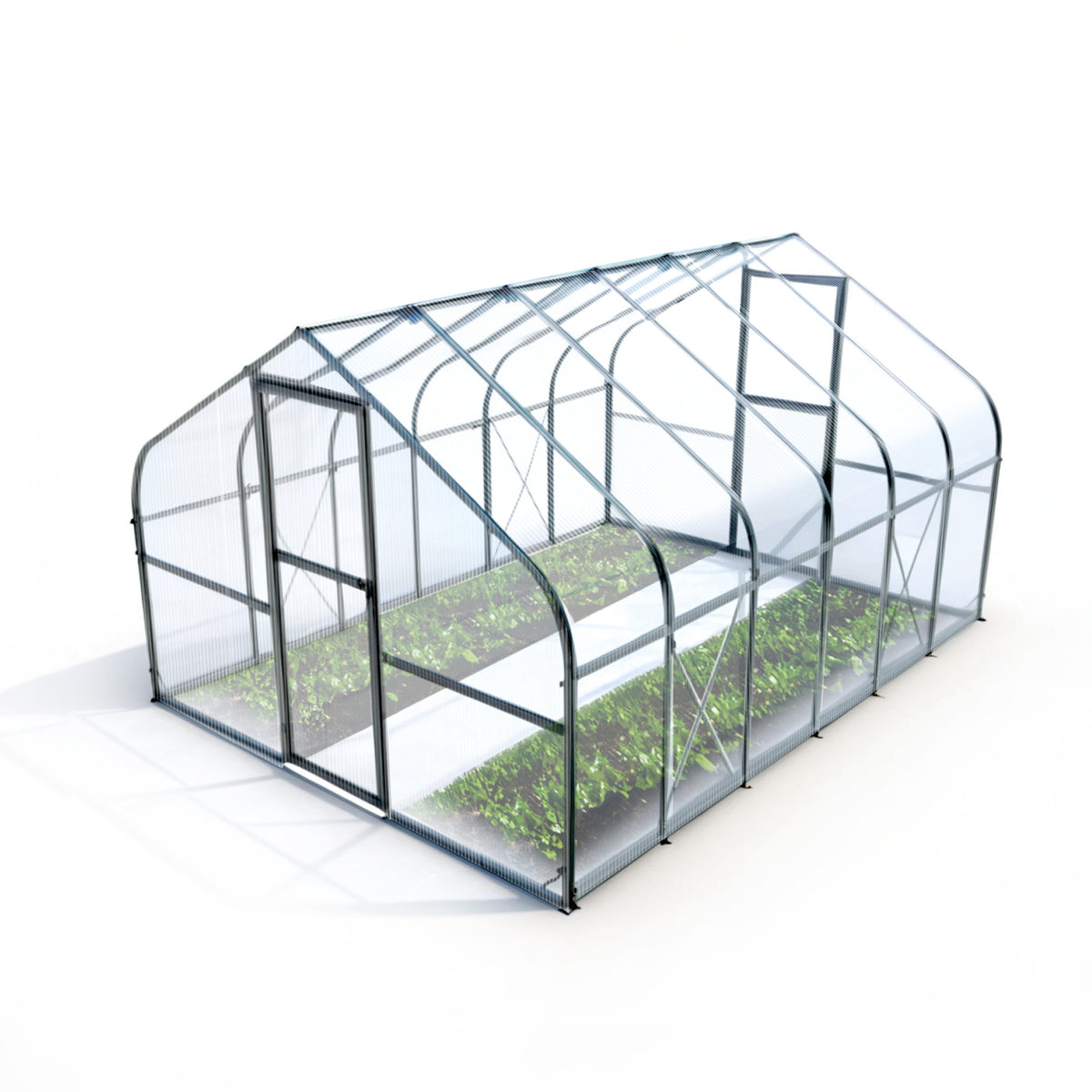 Das Gewächshaus verfügt über zwei Türen, die in zwei Bereiche unterteilt sind, um eine gute Belüftung zu ermöglichen. So kommt frische Luft ins Gewächshaus und Sie verhindern, dass ungebetene Gäste das Gewächshaus betreten.