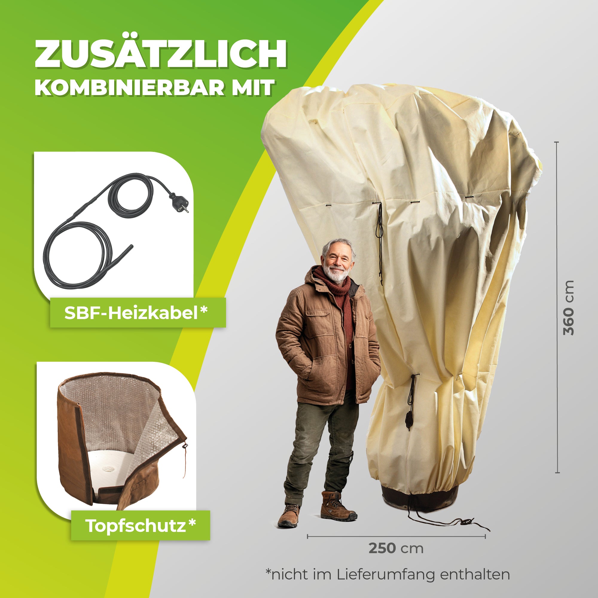 IN 5 VERSCHIEDENEN GRÖßEN: Dieser Pflanzensack (Höhe 360 cm, Breite 250 cm) ist mit seinem seitlichen Premium-Reißverschluss und 3 Schnurverschlüssen optimal für Palmen und Bäume geeignet.