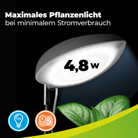 Die BioGreen LEAF LED Pflanzenlampe vereint modernes Design mit einem optimal abgestimmten Lichtspektrum und sorgt für kräftiges, gesundes Wachstum von Zimmerpflanzen, Kräutern und Jungpflanzen. Dank Vollspektrum-LED-Technologie erhalten Pflanzen das natürliche Licht, das sie für Photosynthese, Blütenbildung und vitale Entwicklung benötigen.